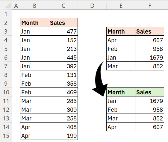 Our objective is to aggregate sales by the month column and arrange the months in chronological order: Jan, Feb, Mar, and so on.